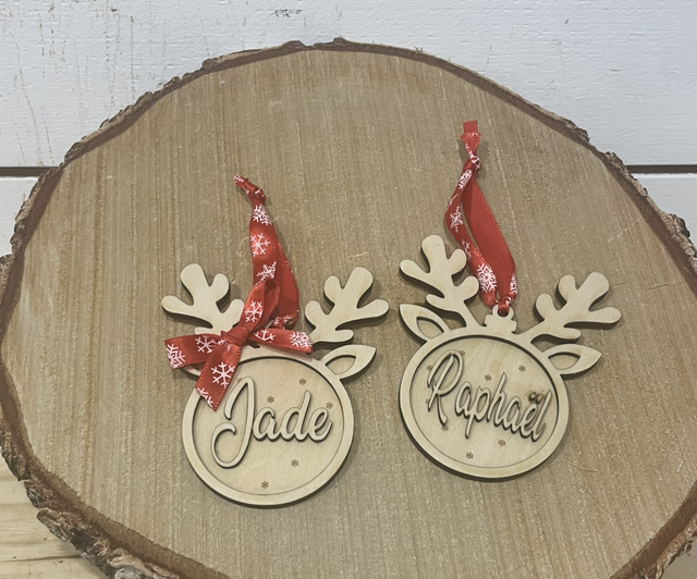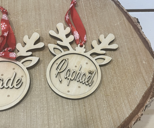 🎄 Apportez une touche de magie à votre sapin avec notre boule de Noël en bois, ornée de cornes de renne et personnalisée avec le prénom en relief. Une décoration unique, chaleureuse et pleine de charme, parfaite pour célébrer les fêtes en famille.. Un souvenir tendre et intemporel à offrir ou à conserver.